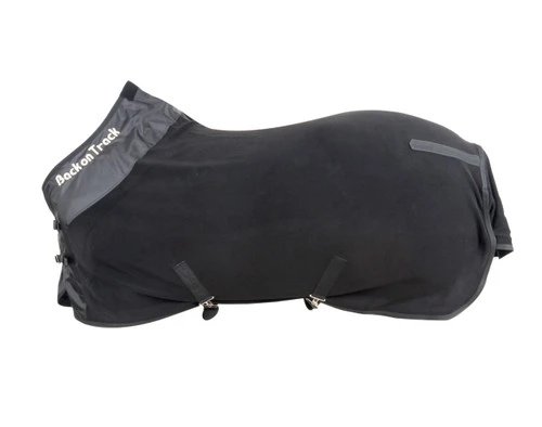For best results leave the Back on Track Fleece Blanket on overnight while horse is in stable, but it may also be used to help warm up muscles prior to exercise. Not for use in pasture. It is not waterproof. Great therapeutic blanket to use on its own during the summer, or as a blanket liner in winter. As an added bonus, this fleece blanket will also help your horse to dry quicker after work or bathing. The Back on Track Ceramic Fleece Blanket has 2 chest buckles, crossing belly straps, and a tail flap.