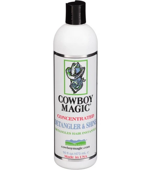 Cowboy Magic Detangler & Shine delivers luster and shine that’s ready for the show ring. Popular Detangler & Shine serum for horses is seriously fantastic stuff! Whether you use it on your horse’s mane and tail or your own hair, the deep conditioning from Cowboy Magic Detangler & Shine can’t be beat. It is available in a 4 (four) ounce tube or a 16 (sixteen) ounce bottle with push-cap.
