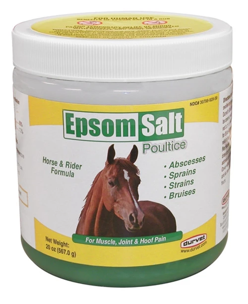 Durvet Epsom Salt Poultice is a topical gel designed for external application for temporary relief of minor pains, bruises, and sprains associated with muscle and joint injuries