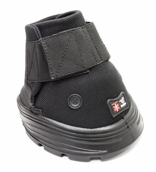 The Easyboot Rx is quick and easy to put on and take off. The unique upper of the Easyboot Rx folds down and opens large enough to accommodate the wide base of a hoof, allowing for quick application without strength or force. A double velcro lock system prevents the boot from opening unintentionally.