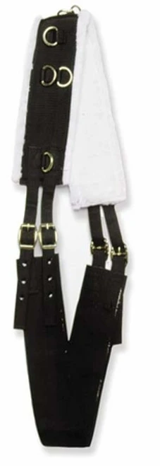 Fleece Surcingle. Quality made horse training surcingle with soft fleece back pad and black nylon webbing straps for a prefectly comfortable fit. Includes numerous rings and dees for attaching training aids. Fleece surcingle is a convenient and economical way to improve your horse lunging routine. Adjusts from 70″ to 80″.