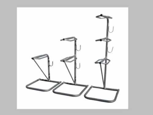 Triple Tier Saddle Stand is portable but very sturdy. It is made with 1 5/8″ Galvanized Steel in a single piece construction for stability. Measures 66 inches high from the base. It has two bridle hooks on the side. Great saddle stand with sturdy construction and durability.
