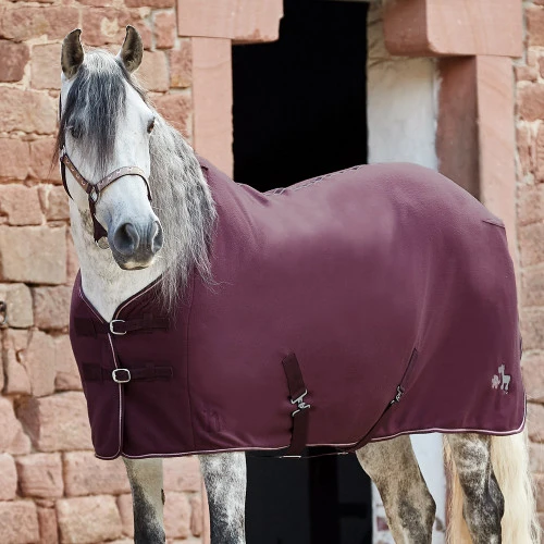 Pony Horze Monster Fleece Blanket has double buckles in the front, a tail strap, and cross surcingles for a secure fit. The high shoulder gussets allow complete range of motion. The whimsical embroidery at the back corner features a silly monster holding his pony’s lead. This is a nice little fleece cooler for horse shows or at home and can be used as a liner under another sheet or blanket for extra warmth.