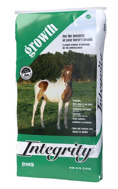 A balanced formula for young, growing horses. Those from 10-12 months up to 3 years of age, including those in training, will benefit from the balanced protein sources, amino acids, vitamins, and minerals. Integrity Growth also promotes intestinal health as the young horse’s digestive system develops with age. This formula may also be fed to pregnant mares during the midterm of pregnancy.