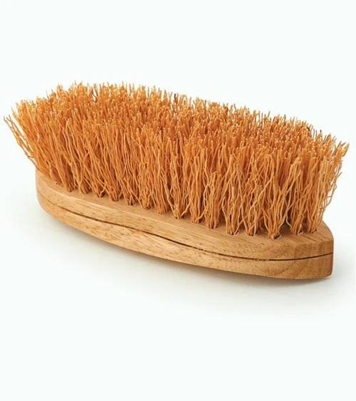 The Legends Furlong Brush from Desert Equestrian has rice root bristles that are wetted before using. The wooden block brush has a comfortable grip and sturdy construction. Use the Rice Root Brush while bathing your horse or wet it before regular brushing to help remove dust and dirt.