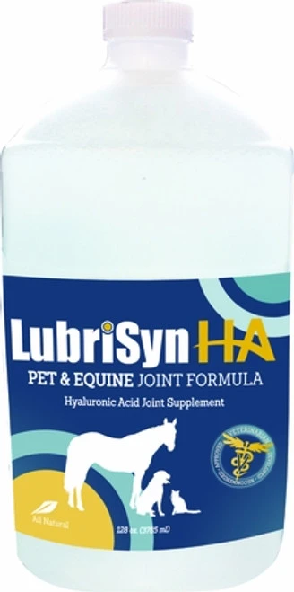 Keep your horse at his optimum performance level with LubriSyn HA! Used daily LubriSyn, an odorless tasteless liquid Sodium Hyaluronate supplement promotes healthy joint function. Patented specific molecular weight allows for easier absorption. LubriSyn’s effectiveness is owed to its specific molecular weight, which is easily absorbed by the body. Daily use maintains consistent, bio-available serum levels. The fluid maintains a more healthy condition under both exercise and normal wear and tear. Can also be given to dogs and cats, making it a beneficial pet supplement for everyone! LubriSyn HA is also available at Mary’s in a Pint, Quart, and Half Gallon size.
