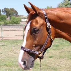 Perri’s premium Nylon Safety Halter is made from double stitched, tear resistant webbing with brass plated hardware, topped off with a leather crown. Protect your horse with the convenience and durability of nylon with the safety and comfort of a replaceable leather crown. Available sizes: Mini-A, Mini-B, Pony, Cob, Full, Oversize.