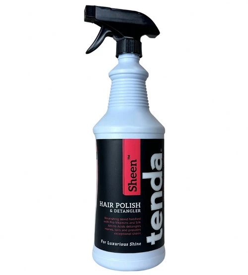 Tenda Sheen Hair Polish & Detangler keeps your horse looking shiny for days with its silky Pro-Vitamin formula that you can spray or wipe on. It detangles manes and tails, too, reducing breakage while brushing. Even better, Tenda Sheen Hair Polish & Detangler can be used on dogs and livestock. It’s great for keeping long-haired dogs and sassy goats looking their best.