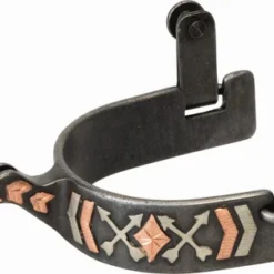 From Weaver, the Scroll Spur with Clover Rowel is lovely and unique.These gorgeous ladies Western spurs have “lucky spurs” written all over them! Check out the pretty silver rowel in four leaf clover design. Elegant, classic spur in antique black steel with engraved silver filigree vine pattern. Spurs have a 1 3/4″ shank and 5/8″ band. Beautiful horse show spur for ladies.